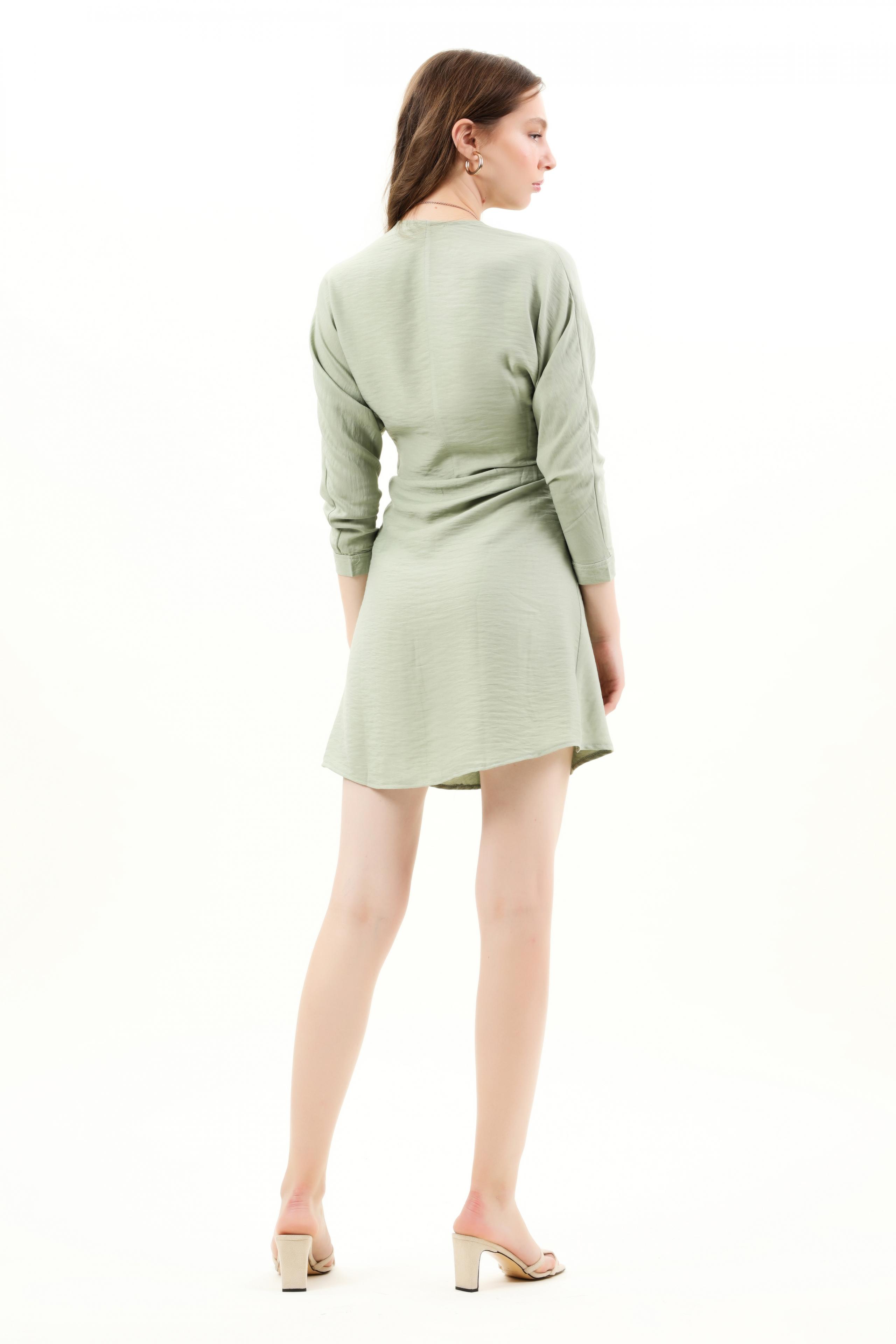 Yeşil Kruvaze Belden Bağlamalı Mini Elbise Copy